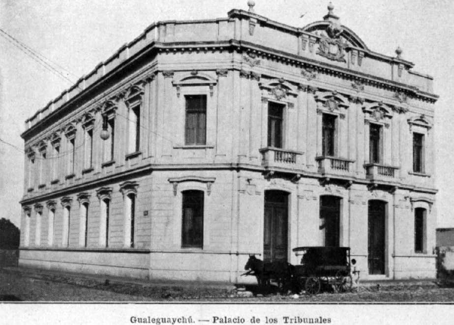 | En un siècle d’existence entre la fondation en 1783 et 1873, la ville de Gualeguaychú n’aura pu se développer comme d’autres villes en raison d’un état belliqueux permanent. On note uniquement pour ce début du XIXème siècle, le début de la construction de la Cathédrale San Jose en 1807 qui se termine en 1836. En 1851, le bourg passe administrativement d’un statut de « Villa » à « Ciudad » grâce a l’intervention d’Urquiza. En 1863, on a besoin devant l’accroissement de la production agricole de disposer d’un port pour envoyer les marchandises et on décide de monter un quai. L’émigration européenne se fait lentement, il faut attendre les années 1875-1880 mais surtout 1890, pour que la ville se réveille et voit débarquer à chaque arrivée de train, de nouveaux colons. Ils viennent de France, d’Italie, d’Espagne mais surtout d’Allemagne et d’Europe centrale pour les nombreux juifs qui viennent s’installer comme agriculteurs. Entre 1890 et 1900, presque la totalité des édifices encore aujourd’hui en service se montent. Le théâtre, le commissariat de police, la municipalité, le tribunal, le club de la société rurale, les écoles et surtout les plus belles demeures de la ville.